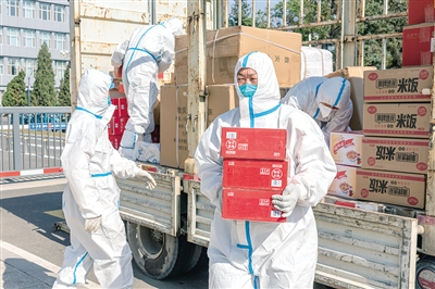 10月24日,内蒙古师范大学物资转运组的教师和工作人员正在赛罕校区搬运物资。据了解,疫情发生以来,该校物资转运组承担着学校急需物资的接收、转运、入库、分发等工作,平均每天运送物资20车次,为守护好校园贡献自己的力量。