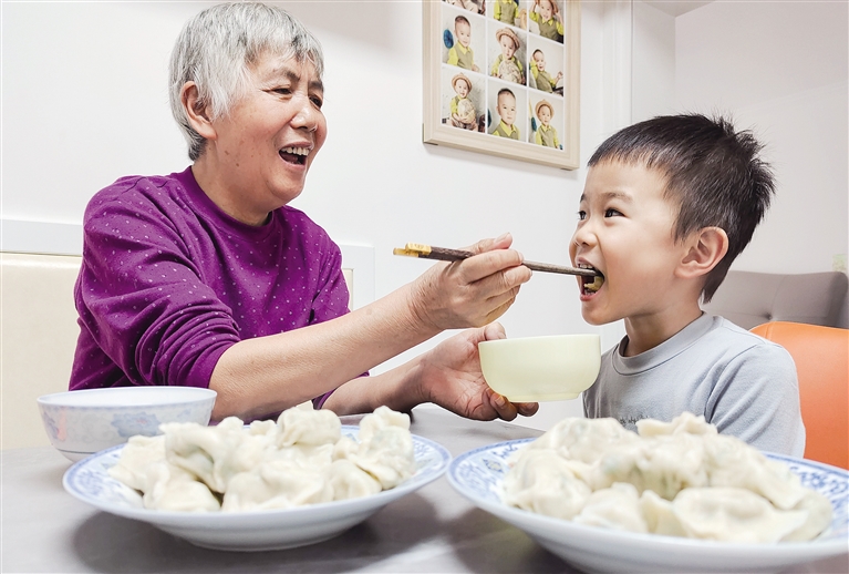 11月6日,呼和浩特市一家祖孙两人在家吃饺子,迎接立冬节气的到来。11月7日正值立冬。在我国北方地区,立冬是秋冬季节之交,故有“交子”之时吃饺子的习俗。摄影/草原全媒·北方新报首席记者 牛天甲