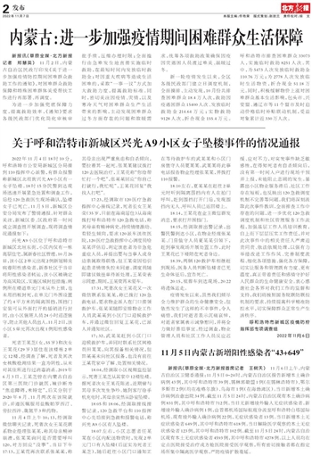 兴光A9小区位于呼和浩特市新城区北垣东街,小区内仅有一栋高层住宅,属新春社区管理。10月26日,该小区2单元出现2例新冠肺炎病毒阳性感染者,新春社区于当日将阳性感染者转运,该小区被确定为高风险区,实施区域封控措施。病例所在楼道单元门未从外上锁,也未用挡板封死,在单元门外围设置了约4平方米的隔离围挡,围挡门安装可从外面打开的插销进行封闭,由小区值班人员24小时巡逻值守,防止其他人员出入。11月2日,该小区5单元再次出现1例阳性感染者。