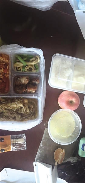 我和一个舍友被分配在一个房间,屋里有矿泉水、口罩、垃圾袋、垃圾封口条和消杀用品。当我按照步骤脱下防护服,做好消杀工作后,已经是晚上12点多。此时,工作人员送来了晚饭,有小米粥、米饭、花卷还有橘子,外加四个菜,我和舍友都有点不敢相信。在这里隔离时,午饭和晚饭都是四菜一汤,还有水果。后来,酒店管理人员说怕吃这家饭店的饭吃腻了,又换了一家饭店,还有可乐喝。为我们做核酸检测的医护人员也非常温柔,让我们在陌生的城市里感受到无微不至的关爱。那段时间,我与其他同学说得最多的一句话就是:我在这里很好,希望以后有机会,能以另一种身份来到鄂尔多斯,看一看这座城市。
