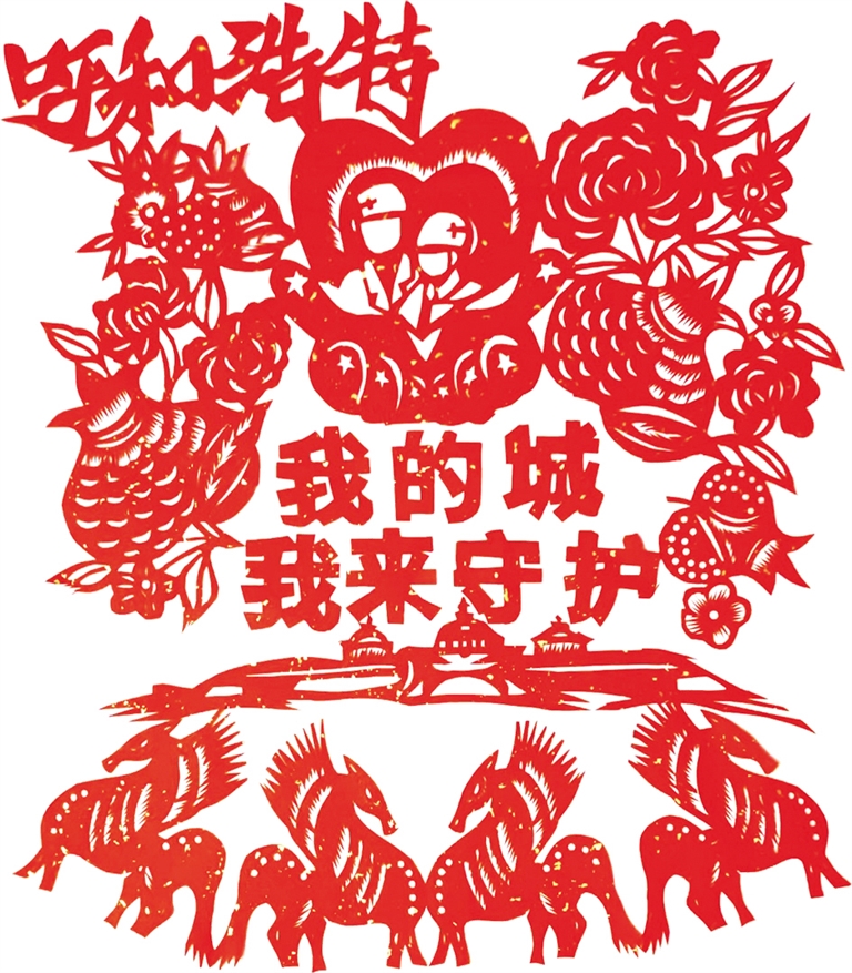“不知不觉中,一套作品剪完了,身边有太多的人和事感动我,也有忍不住的情意想通过一方红纸,剪绘出对他们的敬意和谢意!”董存娥说,这套剪纸作品共有6幅,作品中包含蒙古马和红石榴等元素, 通过剪纸传统技艺,展现文化力量。
