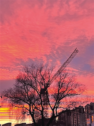 12月6日傍晚,兴安盟乌兰浩特市出现晚霞景观,放眼望去,霞光满天。据了解,晚霞的形成缘于空气对光线的散射作用。当太阳光射入大气层后,遇到大气分子和悬浮在大气中的微粒,就会发生散射。这些大气分子和微粒本身是不会发光的,但由于它们散射了太阳光,使每一个大气分子都形成了一个散射光源,便形成了晚霞。