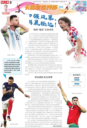 同样的情况也发生在克罗地亚队身上。37岁的老将莫德里奇是克罗地亚黄金一代的核心球员,他和梅西一样,都曾是“金球奖”得主,本届比赛将是“魔笛”在世界杯舞台上的“绝唱”。4年前在莫斯科的卢日尼基体育场,克罗地亚队决赛中输给法国队,没能笑到最后。今年,他们再次迎来证明自己的机会。