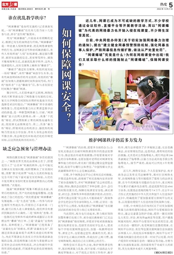 与此同时,校方也行动起来,努力做好预防预警和事后处理工作。部分地区教育部门已关注到“网课爆破”情况频现,并要求学校采取措施加强在线课堂安全,包括实名授权学生进入,要求每个学校设置网络监控员,加强一线教师培训等。课堂之外,也要通过宣传、教育的方式,重点引导学生正确认识网络,养成良好上网习惯,遵守网络规则,规范自己在互联网上的言行。