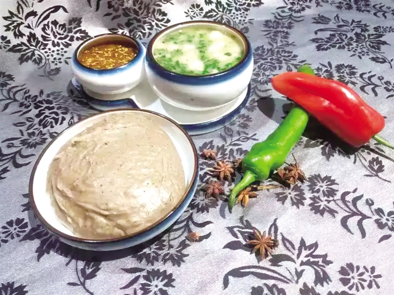 不知为什么,大多男人对这种饭食并不感兴趣,而女人们却乐此不疲。老辈人说,男人馋肉、女人嘴淡。可见,男人好吃肉、女人好嘴淡都是天生的。芽糕不仅可裹腹,还可解嘴淡,深得女人们的喜欢。如果说,每一种食物都滋养一种秉性,芽糕滋养出女人绵言细语、刚柔并济的秉性。所谓阴阳和谐,则是男人为社会助长雄风,女人为生活注入柔情,各尽其责、各司其职,繁衍传承,生生不息。