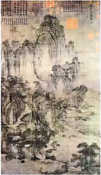 还有唐末五代时期画家、北方山水画派之祖荆浩。他曾为官,后罢官回乡,隐居太行山。在北方的崇山峻岭中,他曾樵荆为薪。在砍伐过程中,刀斧劈荆条给他启示,他觉得作山水画时,要融入披荆斩棘一般的骨力、魄力和魅力。他开始采用毛笔横扫,以坚凝挺峭、极有力度的笔力,融入篆隶书法的刚力,展现山脉之坚硬、山势之峭劲,令大山雄峻得仿佛用刀斧劈砍过一样,体现出高深回环、大山堂堂的气势,由此,荆浩创立了“大山大水,开图千里”的新格局,开创了中国画技法“皴法”之“斧劈皴”的雏形。及至南宋李唐、夏圭等画家,“斧劈皴”被频繁使用。