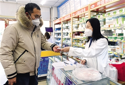 12月27日,呼和浩特市民在久安药房领取退烧药。据介绍,该药房紧急调运2万片乙酰氨基酚片,从12月23日开始向市民免费提供,现已发放乙酰氨基酚片近1万片。摄影/草原全媒·北方新报首席记者 牛天甲