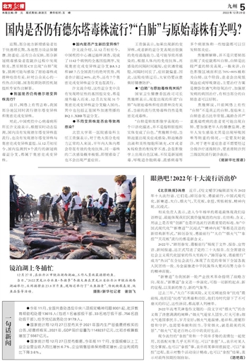 许文波介绍,从12月初至今,中国疾控中心通过抽样调查,完成了1142个病例的全基因组测序,发现奥密克戎变异株亚分支BA.5.2和BF.7占全国流行的绝对优势,两者合计超过80%。此外,还有7个奥密克戎变异株亚分支也在流行。