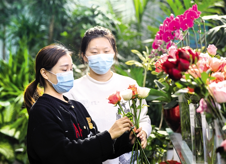 12月29日,市民在呼和浩特园艺花卉中心的花亦世界内选购鲜花。随着2023年临近,呼和浩特各个花卉市场繁忙起来。蝴蝶兰振翅欲飞,杜鹃亭亭玉立,海棠娇艳动人,各类花卉竞相绽放,争奇斗艳,春意盎然间透露出浓浓年味,吸引众多市民选购。摄影/草原全媒·北方新报首席记者 牛天甲