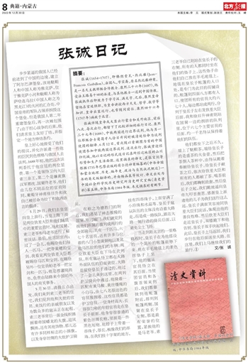 他们都坐下之后不久,端上了鞑靼茶,端给皇长子的是盛茶的大金壶,然后把茶倒入茶杯中,由侍从跪着奉献给皇长子。给皇长子献茶之后,依次给钦差大臣和所有的人都献了茶。喝茶前后,我们都鞠躬致谢,然后皇长子立起,我们跪地遥向皇帝九叩首谢恩。感谢皇上派遣他的儿子为我们送行这么远。皇长子满面笑容地同钦差大臣们说话,体现出他的善良性格。然后钦差大臣们走近皇长子,双膝跪下和他告别。皇长子双手扶起他们。此后,皇长子上马返回,我们步行在他后面送至大路。在这里,我们上马继续我们的旅行。①文/张 诚