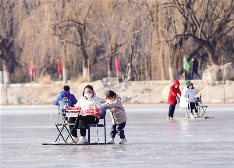 1月4日,呼和浩特市民在青城公园畅享冰上乐趣。为了让市民就近感受冰雪魅力,青城公园近日增设冰雪乐园,滑冰、坐冰车、玩雪圈……诸多冰雪游乐项目让人们游园快乐翻倍。摄影/草原全媒·北方新报首席记者 牛天甲
