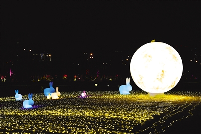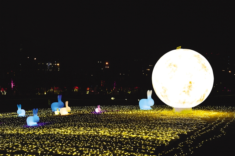 据赛罕区副区长任杰介绍,在小草公园东北角人工造雪1.7万平方米,搭配串灯、月球灯、抱树灯、地插花、气球灯、动物造型灯、玫瑰花灯等各类时尚灯景,达到观灯与游玩为一体的景观效果,营造出绚丽多彩、喜庆祥和的节日氛围。