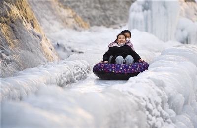 山间冰瀑引客来