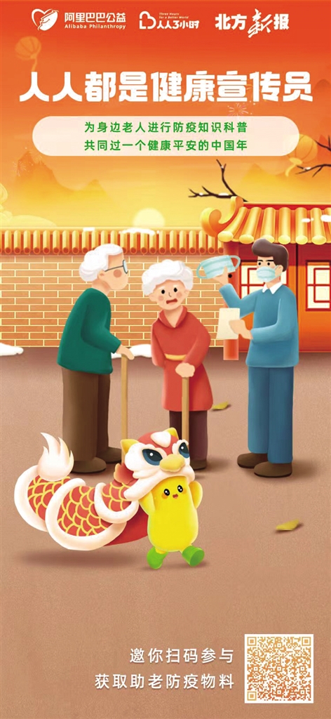 为了响应国家号召,助力农村地区疫情防控,阿里公益“人人3小时”“天天正能量”平台联合中央国家机关爱国卫生运动委员会办公室、中国光华科技基金会、中国人口福利基金会、芝麻信用、高德地图、橙狮体育、阿里健康以及本报在内的20多家媒体公益伙伴,共同倡议发起“人人都是健康宣传员”公益行动,呼吁各地返乡人员回到家乡后自发成为“健康宣传员”,为身边老人进行防疫知识科普,并积极通过朋友圈、微信群等各种方式引导农村群众学习健康知识。