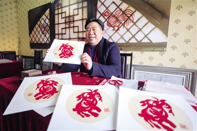 1月17日,中国剪纸(和林格尔剪纸)国家级代表性传承人、著名剪纸艺术大师段建珺正在展示作品《玉兔迎春》。据了解,中国剪纸(和林格尔剪纸)与当地的社会风俗紧密联系,作品反映了和林格尔地区数千年的古老文化传统。其中,《玉兔迎春》是段建珺为兔年新创作的作品,包含着吉祥喜庆的寓意。