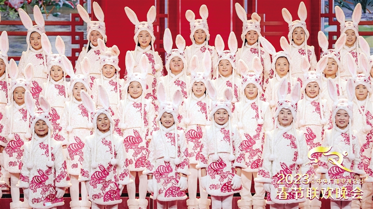 发布会上,今年央视春晚的舞美短片首次亮相,用简约灵动的舞美设计直观阐释了来源于中国古典文学词牌名“满庭芳”的理念。2023年春晚官方吉祥物“兔圆圆”动态形象也首次与观众见面,活泼的萌萌态,亮亮的大眼睛,带给人满满的喜气吉祥。