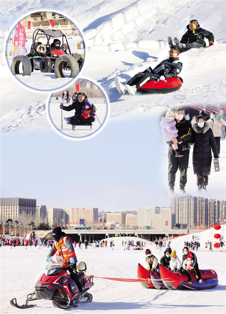 春节期间,呼和浩特市民在东河冰雪场上嬉雪滑冰,尽情撒欢。据了解,作为呼和浩特市面积最大的公益性自然冰雪场地,东河冰雪场分为冰区和雪区两大区域,自1月13日正式向市民免费开放以来,已经接待了20余万人次。香蕉船、滑雪圈、冰车等项目吸引了众多市民畅享冬日激情。