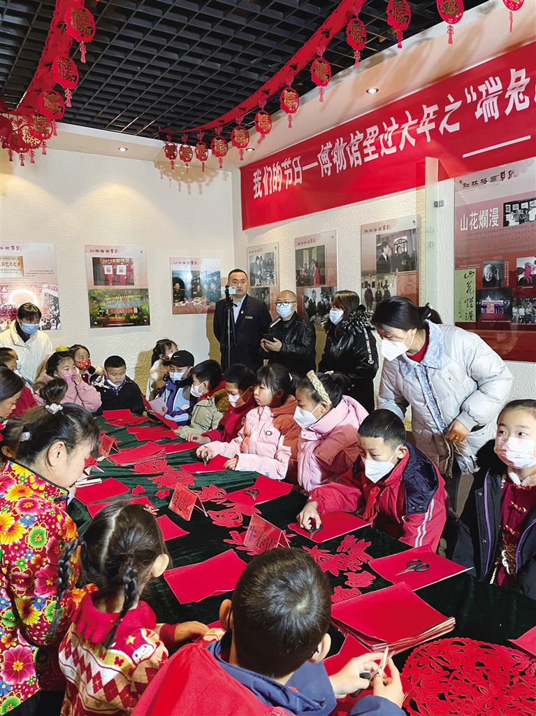 2月2日,“瑞兔迎福 剪纸贺春”非遗传承活动在和林格尔盛乐博物馆举办。小朋友和剪纸爱好者在博物馆里寻找年味,感悟中华优秀传统文化,在喜气洋洋的春节时光里印刻一段温暖记忆。文·摄影/草原全媒·北方新报首席记者 查 娜 实习生 佀 涵