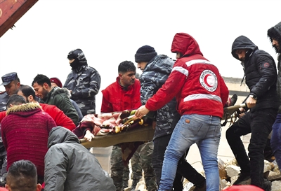被黑暗笼罩的废墟中,受困居民大声呼救,亲人们焦急地寻求帮助。当地居民侯赛因说:“许多建筑物倒塌了,很多人被困。现在是冬天,天气很寒冷,我们希望救援人员赶快到来。”