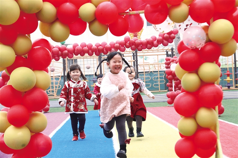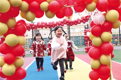 2月7日,山东省高密市金苹果幼儿园的孩子们在操场奔跑。 近日,多地中小学校和幼儿园开学。孩子们在丰富多彩的活动中开启新学期。 (据新华社报道)