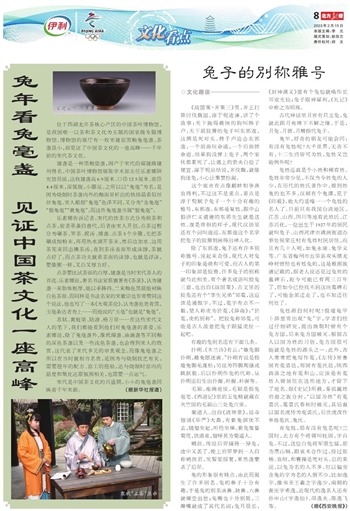 有兔姓,那有没有兔名呢?三国时,北方有个将领叫眭固,字白兔。不过,这位白兔将军很生猛,原为黑山贼,跟袁术合作过,投过张杨、袁绍,和曹操是死对头。总的来说,以兔为名的人不多。但以偏旁含兔的字为名的人倒不少,比如逸字,像书圣王羲之字逸少,南朝的谢庄字希逸,近现代的逸名人还有孙中山(字逸仙)、邵逸夫、陈逸飞等。(据《西安晚报》)