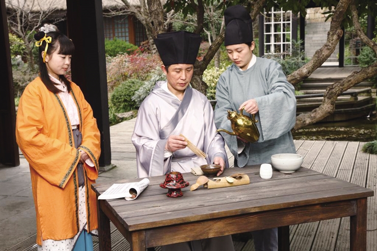 乐素娜告诉记者,宋代的饮茶方式分为煎茶和点茶,前者承袭自唐代,后者由宋人开创。点茶过程分为碾茶、罗茶、候汤、熁盏、点茶5个步骤,先把茶碾成细粉末,再用热水调开茶末,然后边加水、边用茶筅来回击拂茶汤,直到茶汤表面形成沫饽,茶就点好了。而点茶功夫就看茶面的沫饽,也就是浮沫,要像粥一样,又白又厚方好。