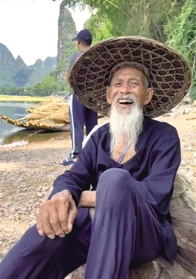 一名当地村民曾告诉记者,黄全德虽然年纪大,但身子骨很硬朗,做渔翁“模特”十几年了,即使九十多岁高龄,每天还出去在漓江边和他人合影,竹筏也能撑得很快。