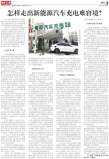 针对新能源汽车充电难的问题,有业内人士表示,首先要加快充电设施建设,尤其是快充充电桩布局速度;其次要扩大充电设施布局范围,让充电设施走向乡村与国省道;还要加强充电设施管理,杜绝燃油车占位等现象。