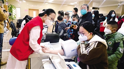 “来,小朋友,不要害怕,伸出胳膊握住拳头,马上就好。”医务人员耐心细致地为每个孩子做着检查,并讲解日常科学饮食、个人卫生注意事项、疾病的预防和治疗等常识。