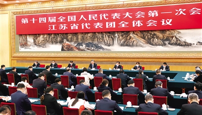 在认真听取大家发言后,习近平作了发言。他首先表示赞成政府工作报告,充分肯定江苏五年来经济社会发展和党的建设各方面取得的成就,希望江苏继续真抓实干、奋发进取,在高质量发展上继续走在前列,为谱写“强富美高”新江苏现代化建设新篇章实现良好开局,为全国大局作出新的更大贡献。