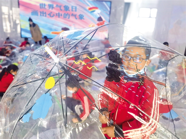 当日,呼和浩特市土默特左旗气象局举办了“3·23”世界气象日活动——画出心中的气象。涂鸦开始前,气象局业务人员带着小朋友们参观了气象观测场,对气象观测场设备、人工影响天气设备、防灾减灾知识等进行了科普讲解,并设置了有奖问答环节。科普知识讲解后,工作人员给小朋友们发放了透明的雨伞和画笔,让他们把心中的气象画出来。
