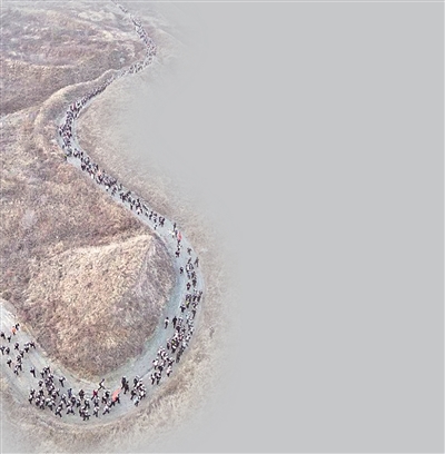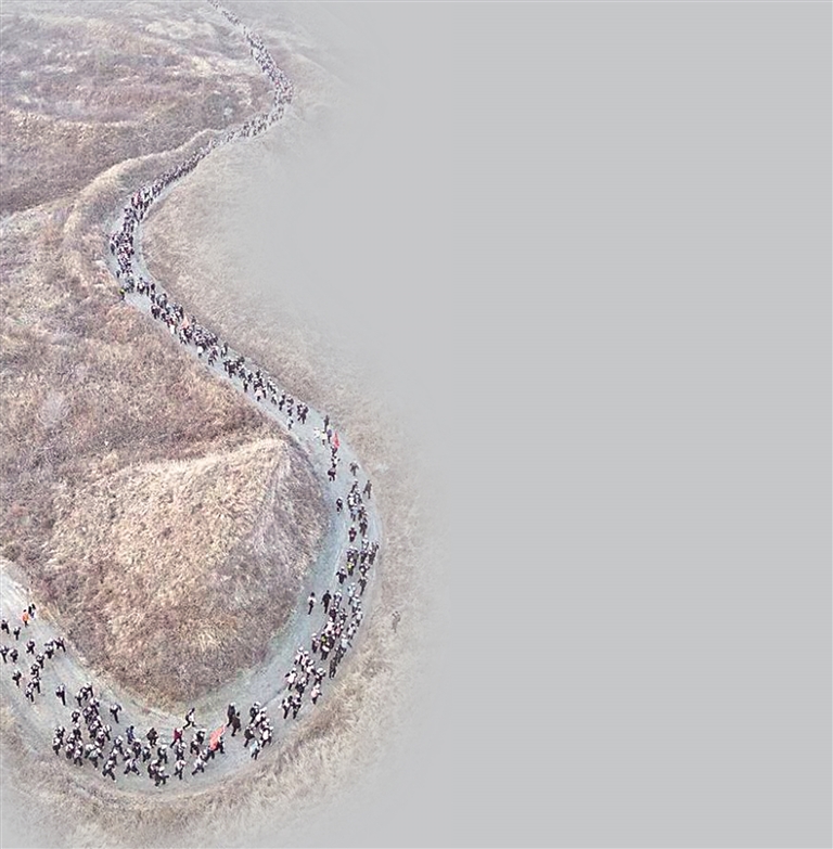漆黑的夜色里,蜿蜒的队伍走过一段平缓小道,便进入了山路。山路曲折,盘旋而上,师生们互相搀扶、鼓励,勇往直前。一路上,大家高举红旗、唱红歌,手拉手翻山越岭,肩并肩齐步前行,无一人放弃。