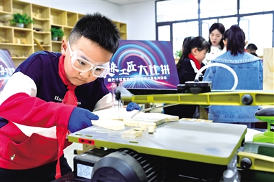 4月2日,学生在康巴什区青少年发展中心制作创意木制作品。当日,鄂尔多斯市康巴什区第四届中小学生劳动技能大赛“未来工匠大比拼”活动在康巴什区青少年发展中心举行,来自当地9所小学的100名“小工匠”在创意设计、木材加工等环节中感受劳动之美,学习工匠精神。摄影/王 正