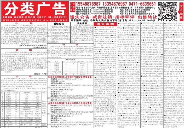 内蒙古保险颁(换)发保险许可证公告