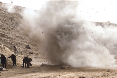 在现场,工作人员在各点位埋好了炸药,“火药味”十足。剧中,当地老百姓配合八路军战士,历尽周折,抢了日军的坦克,却没想到敌人还有一辆坦克,于是一场扣人心弦的阻击战开始了。影片导演王路沙告诉记者,这一幕是整部电影的“高光时刻”。