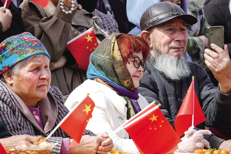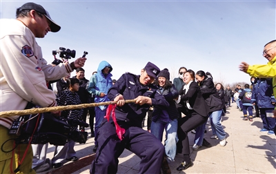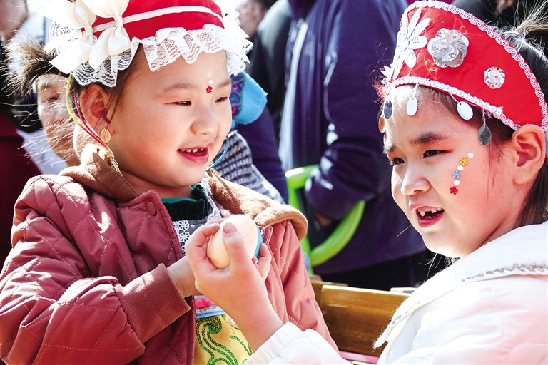 4月16日,在额尔古纳市恩和俄罗斯民族乡,呼伦贝尔边境管理支队恩和边境派出所民警与当地俄罗斯族群众、前来游玩的游客一同欢庆巴斯克节。身着盛装的俄罗斯族群众欢聚一堂,举行哈道克迎宾、演唱《喀秋莎》、跳“韦桥辽克”、打骨头、套圈、拔河、撞彩蛋,欢庆传统节日。不少游客也载歌载舞,参与进来。据了解,“巴斯克节”是俄罗斯族的传统节日,2011年被列入中国第三批国家级非物质文化遗产名录。文·摄影/草原全媒·北方新报记者 张巧珍 通讯员 吕俊昊
