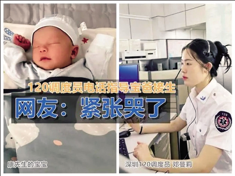 邓曼莉2018年6月入职,成为深圳120的一名调度员。这次是她第一次通过电话指导患者家属在家中成功接生。