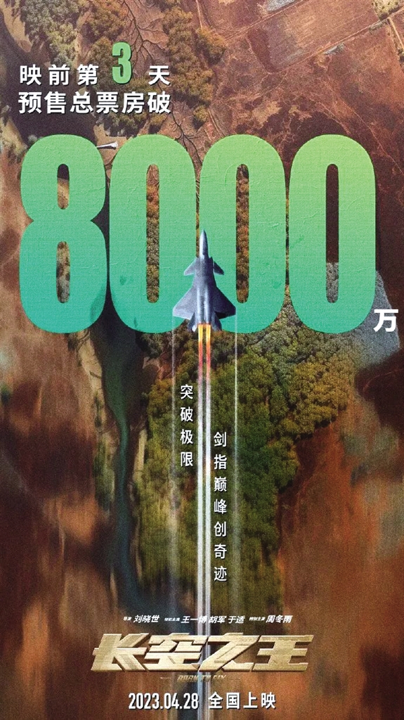 拥挤的五一档中,热血励志大片《长空之王》在预售环节率先“一飞冲天”,预售票房已超8000万元。电影由刘晓世执导,王一博、胡军、于适、周冬雨主演,聚焦新时代中国军事变革与航空武器装备发展,带观众走进空军试飞员群体,真实揭秘最先进战斗机诞生的艰辛历程和试飞员的工作状态,展现当代空军昂扬的精神风貌。