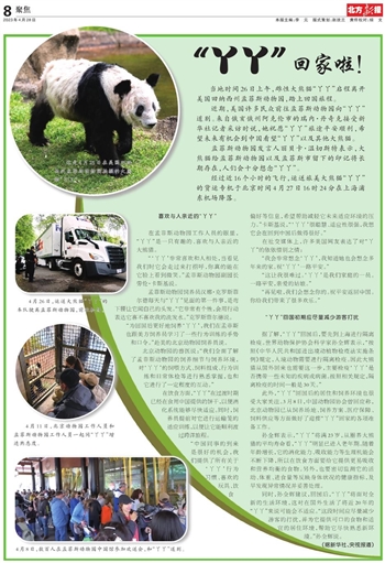 北京动物园的兽医说:“我们全面了解了孟菲斯动物园的饲养细节与饲养环境,对‘丫丫’的饲喂方式、饲料组成、行为训练和日常体检等进行熟悉掌握,也和它进行了一定程度的互动。”