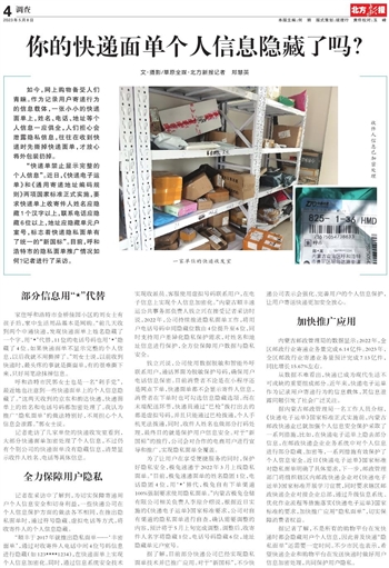 据了解,目前部分快递公司已经实现隐私面单技术并已推广应用。对于“新国标”,不少快递公司表示会强化、完善用户的个人信息保护,让用户寄送快递更加安全放心。