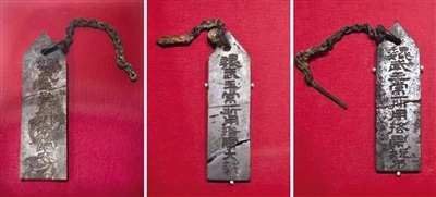 《三国演义》的刀光剑影中,曹操的“倚天剑”“青釭剑”锋利无比、削铁如泥。据介绍,曹操墓中共发现4件剑身残块,均为钢质,部分还带有剑鞘残痕,分属3个不同个体。还有大型刀4件、中型刀2件、小型刀11件,大部分已残损,其中一把刀的环首上发现含有金箔的编织物包裹。