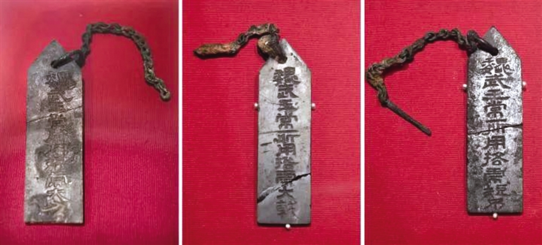 2009年11月11日,考古队员清洗一块石牌残片后发现其上有“魏武王常所用”的字样,领队潘伟斌非常重视,安排大家立即对近日出土的其他石牌残片进行清洗,发现恰有残片能与之组成一枚完整圭形石牌,刻有“魏武王常所用挌虎大戟”。