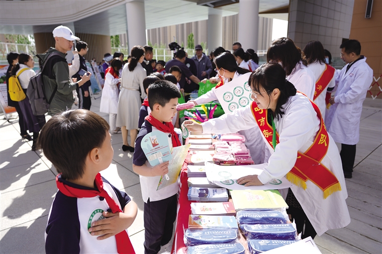 “每天的膳食应包括谷薯类、蔬菜水果、畜禽鱼蛋奶和豆类食物,平均每天摄入12种以上的食物,每周25种以上,合理搭配……”5月17日,在赛罕区万锦小学,呼和浩特市疾控中心的工作人员给学生和家长讲解了《中国居民膳食指南》(2022版)。当日,2023年内蒙古自治区全民营养周暨“5·20”中国学生营养日正式启动。在全民营养周期间,呼和浩特市9个旗县区还会同步开展系列宣传活动,解读宣传《儿童青少年生长迟缓食养指南(2023年版)》等内容,宣传合理膳食和食养对防控疾病的重要意义,鼓励居民合理搭配日常膳食,积极参加体育活动,预防营养不足和超重肥胖。