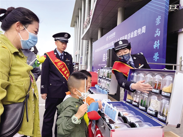 5月20日,市民辨识各类毒品。当日,包头市禁毒支队、九原区公安分局禁毒大队、警支大队、赛汗派出所在包头市科技馆开展禁毒宣传活动,倡导积极健康的生活方式,营造安全、和谐、稳定的社会治安环境。通过设置咨询台、展示仿真毒品、发放禁毒宣传资料等形式,讲解“冰毒”“海洛因”等毒品带来的危害,进一步增强市民识毒、防毒、拒毒意识。摄影/草原全媒·北方新报记者 周 蕾
