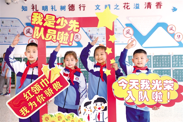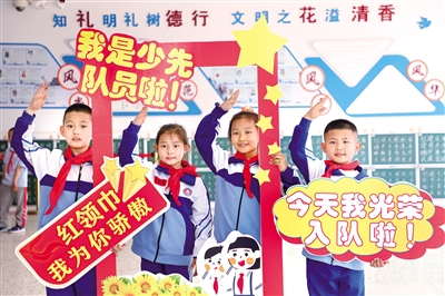 5月29日,呼和浩特市玉泉区通顺街小学举行以“童心向党 争做新时代好队员”为主题的少先队员入队仪式,新队员们在六一前夕戴上红领巾,光荣加入中国少年先锋队。 摄影/草原全媒·北方新报首席记者 牛天甲
