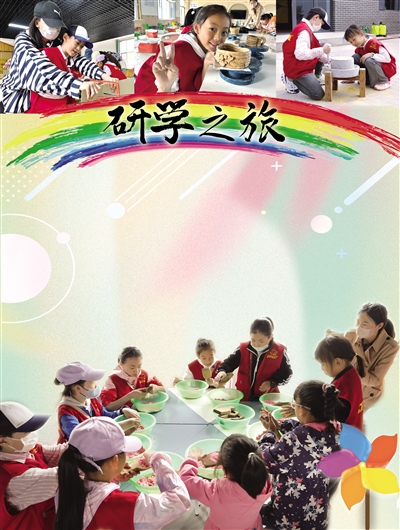 在研学基地鲁班馆、陶艺馆内,小记者们变身“巧手小匠人”,丈量尺寸、标注记号、切割木板、甩泥、拉坯……在研学班老师的帮助下,一件件精美的作品诞生了。