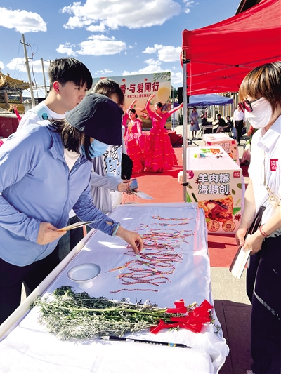 6月11日下午,呼和浩特市百人百组组委会办公室与爱心企业在大盛魁文创园南区联合举办了“我们的节日——端午”传统文化主题实践惠民活动。市民通过洗糯米、配食材、包粽子、下锅煮等完整程序,体验包粽子的乐趣,感受传统节日的魅力。此外,活动还设有挂艾叶、佩香囊、系五彩绳、饮雄黄酒、划旱龙船、吃五黄饼等传统习俗项目。摄影/草原全媒·北方新报首席记者 牛天甲