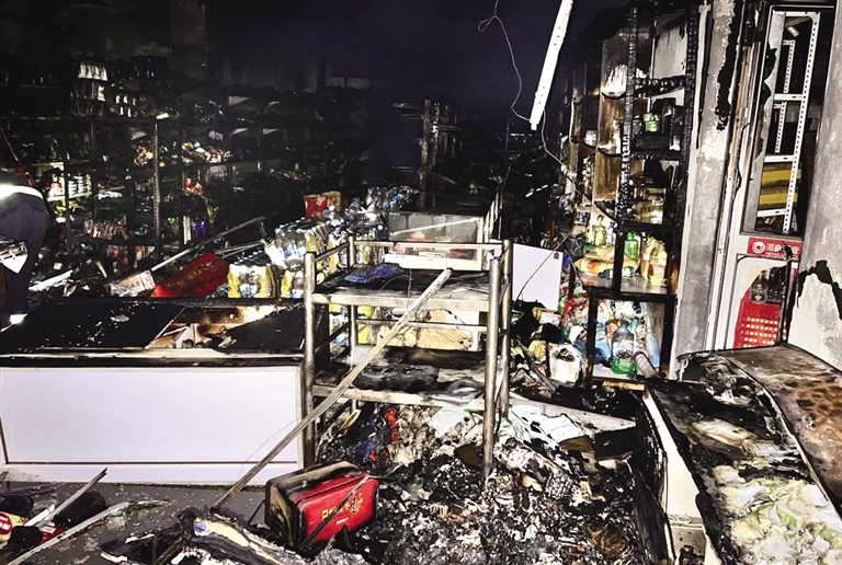 “不好了,我们超市着火了……”深夜时分,接到群众报警电话后,巴彦淖尔市消防救援支队磴口县钢铁路消防救援站立即派人到场处置。“我们当时到达现场后,火势正处于猛烈燃烧阶段,大量浓烟不断从里面冒出,发出噼里啪啦的爆燃声,情况紧急。”6月12日,据出警的一名消防员回忆,了解现场情况后,消防员迅速断开火场电源,消除安全隐患,并组织人员铺设水带进入着火的超市,利用高压水枪对屋内明火进行控制打压。
