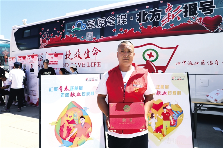 来自内蒙古医科大学、内蒙古师范大学、内蒙古大学的青年学子们纷纷献血,他们中不少人是内蒙古公益联盟志愿服务队成员。内蒙古公益联盟志愿服务队队长柳军等5人被聘为无偿献血宣传大使。当接过红彤彤的荣誉证书时,柳军说,每一次无偿献血志愿服务都能把爱传递给更多的人。他坚信献出的每一滴血,都能传送生命的活力,他将号召更多人加入到无偿献血队伍中来。
