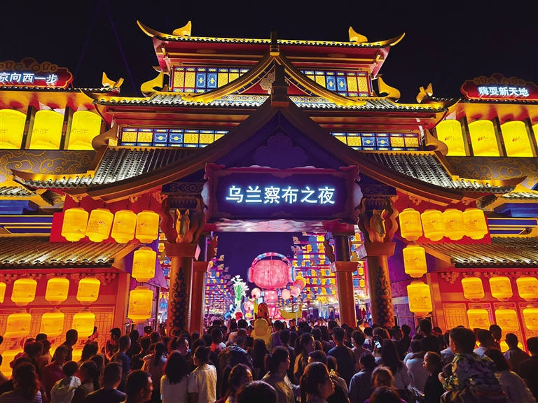 新报讯(草原全媒·北方新报记者  张巧珍)  火树银花不夜天,流光溢彩夜辉煌。6月16日晚,伴随着铿锵激越的鼓乐声,“北京向西一步·乌兰察布之夜”嗨耍新天地正式开街迎客,吸引了全国各地数万人夜游打卡。